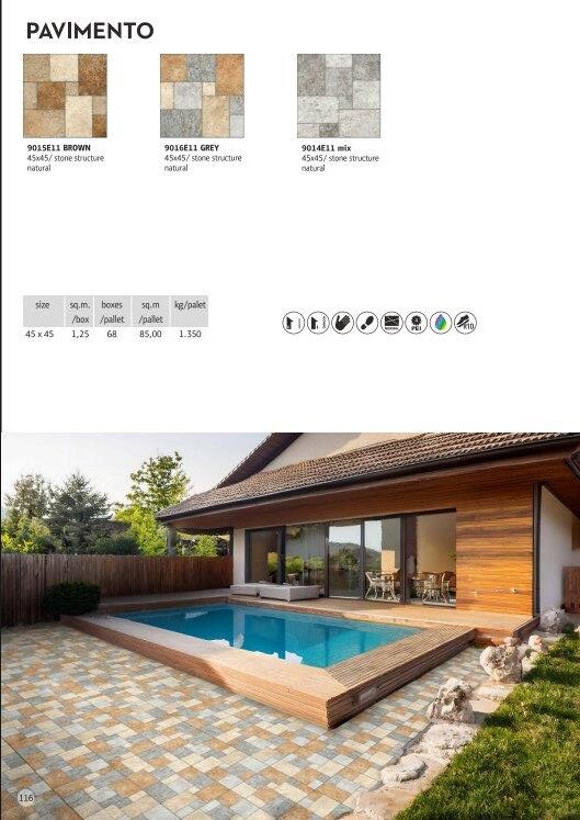 - Η σειρά αποτελείται από τρεις αποχρώσεις. Το PAVIMENTO GREY, το PAVIMENTO MIX και το PAVIMENTO BROWN με ανάγλυφο ματ φινίρισμα.